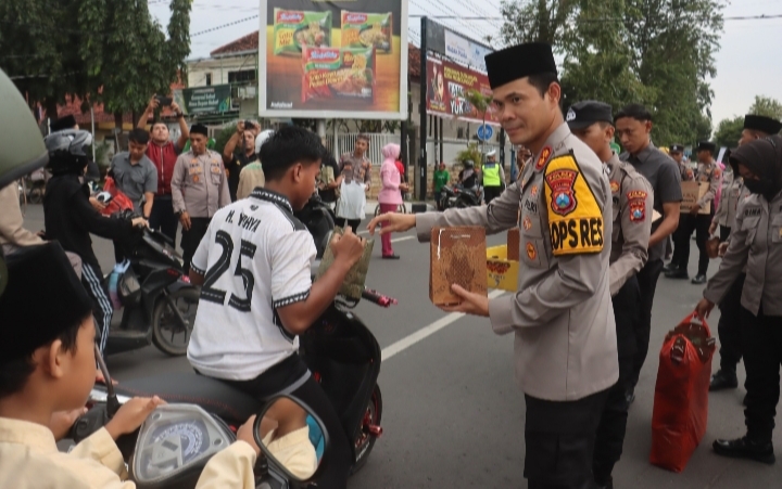 PENJURU.ID |Probolinggo – Polres Probolinggo Kota membagikan ratusan paket takjil kepada masyarakat di depan Mako Polres Probolinggo Kota dan kawasan Alun-Alun Kota Probolinggo, Kamis (27/2/2026).