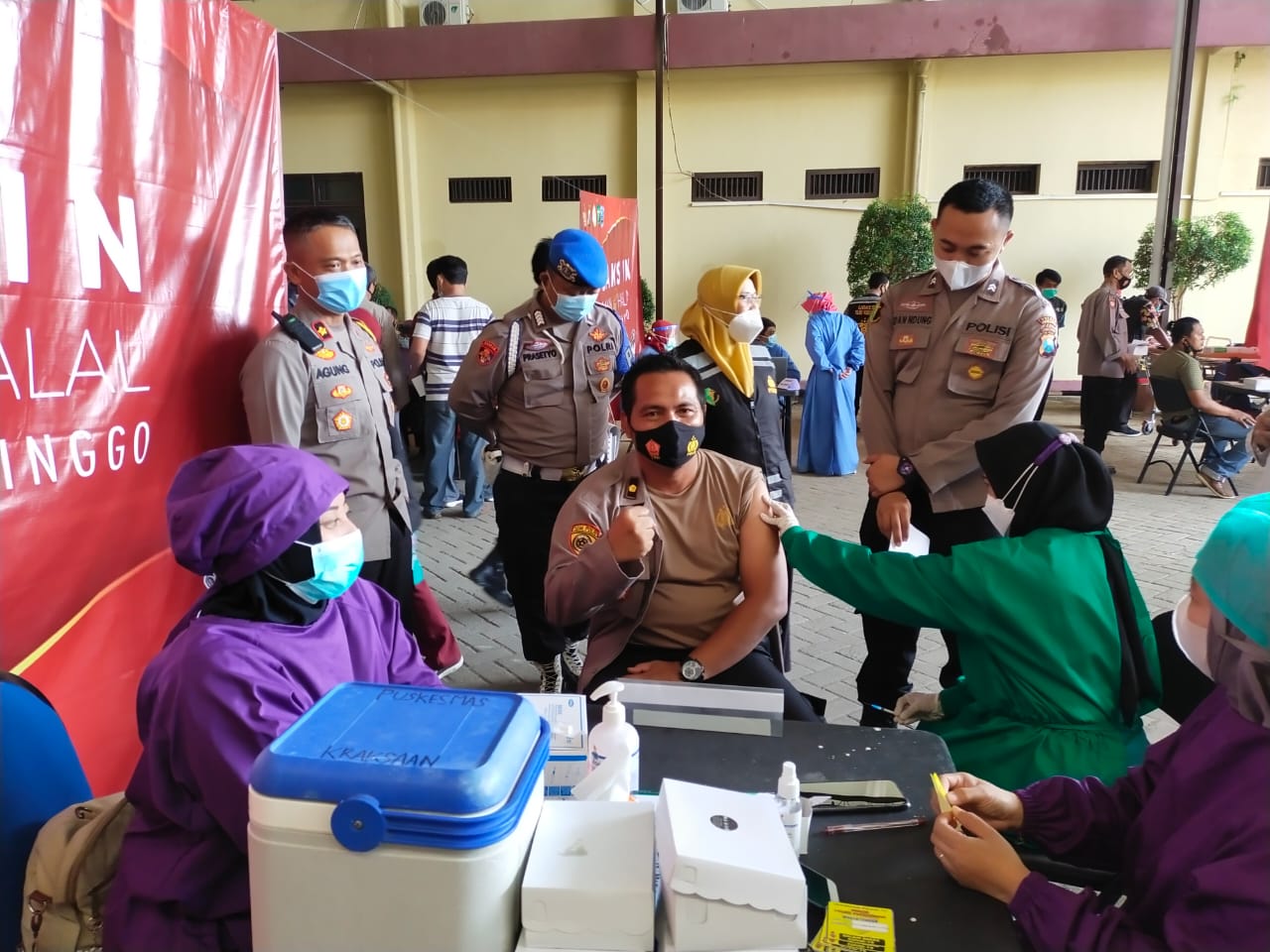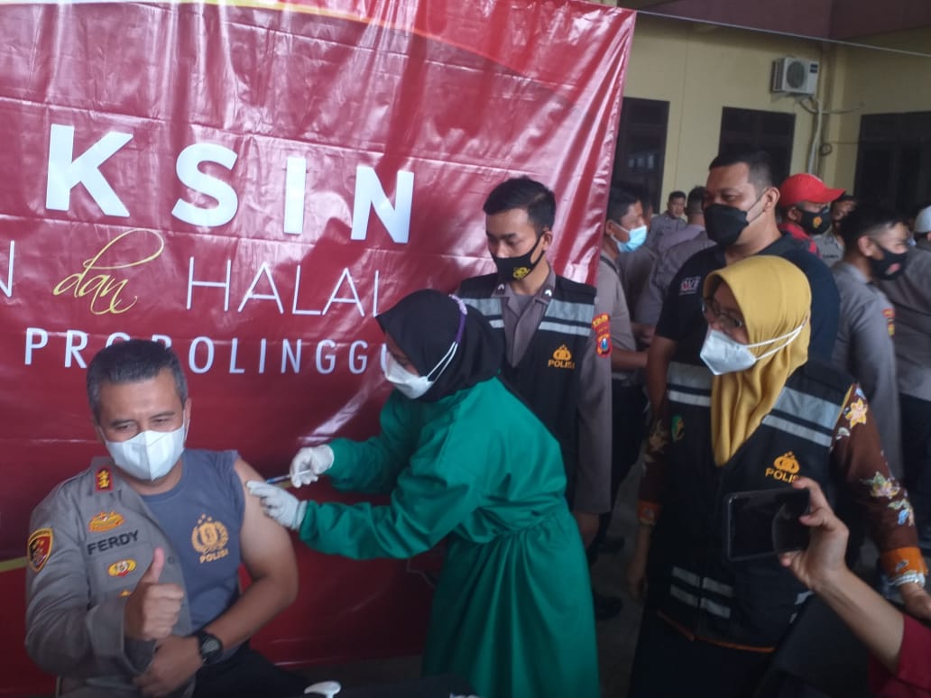 “Ada sekitar 569 anggota Polres Probolinggo termasuk anggota Polsek jajarannya beserta para ASN dilingkungan Polres Probolinggo, mengikuti Vaksinasi yang diselenggarakan Urkes Dokpol Polres Probolinggo, di halaman Mapolres.