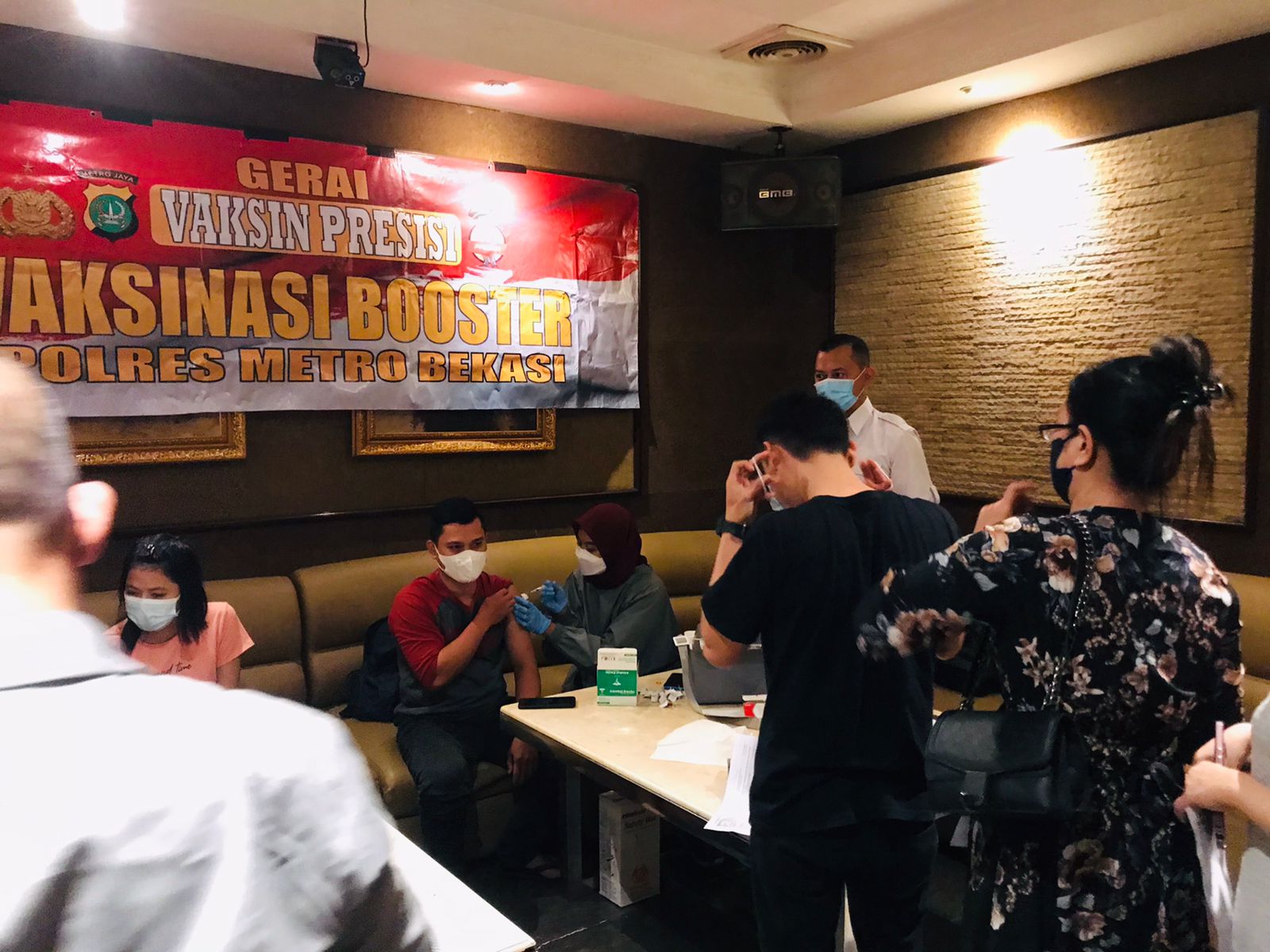 Kaur Mintu Sat Res Narkoba Polres Metro Bekasi, Aipda Ngadi Pangestu, S.H menjelaskan, Vaksinasi Presisi Booster kali ini menyasar para pekerja malam dan masyarakat umum dengan target sebanyak 300 dosis pada hari kemarin.