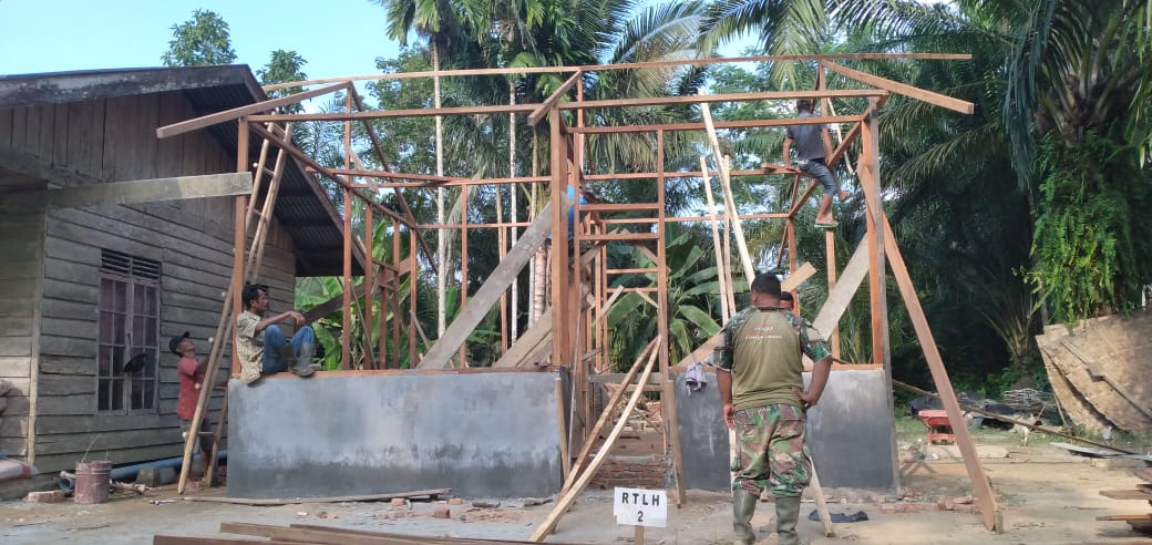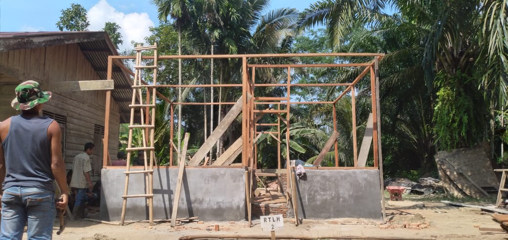 PENJURU.ID | Aceh Tamiang – Rumah Tidak Layak Huni (RTLH) ke-2 milik warga Desa Rimba Sawang melalui gelaran TMMD Reguler Ke-108 Kodim 0117/Atam sudah mulai berdiri tegak, bertempat di Desa. Rimba Sawang, Kec. Trenggulun, Kab. Aceh Tamiang, Senin (06/07/2020)