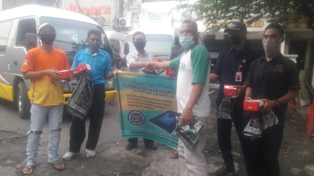 Selain berbagi takjil dan makanan, mereka juga melanjutkan apa yang menjadi program Letho dalam safari ramadhan, yakni membagikan alat sajadah kepada umat muslim.