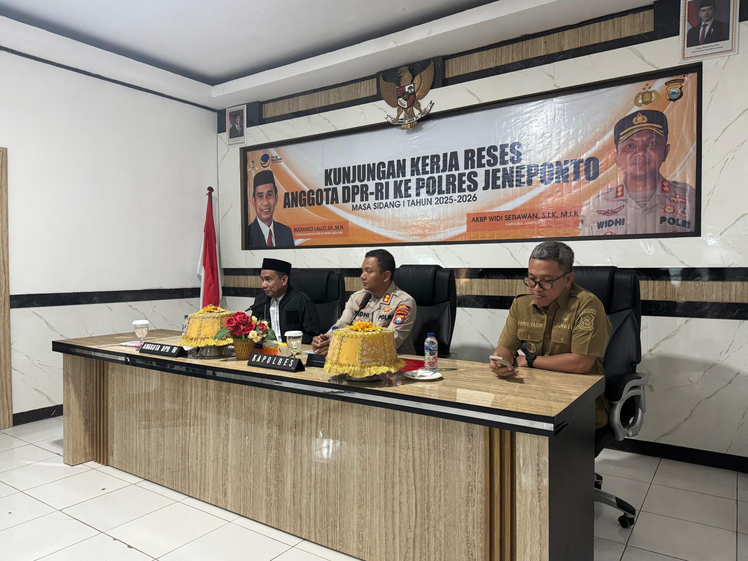 Dalam sambutannya, AKBP Widi Setiawan menyampaikan apresiasi atas kunjungan Rudianto Lallo. Menurutnya, kedatangan Anggota Komisi III DPR RI tersebut menjadi bentuk perhatian dan motivasi bagi jajaran Polres Jeneponto dalam menjalankan tugas menjaga keamanan dan ketertiban.
