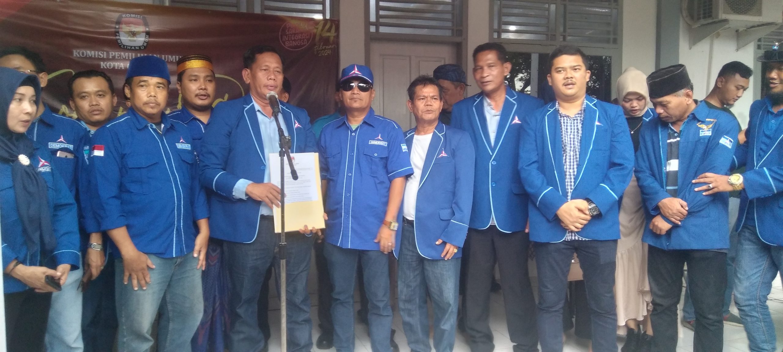 Pengurus dan Kader Partai Demokrat Cilegon mendatangi kantor KPU Cilegon, Sabtu 13 Mei 2023. Kedatangan pengurus partai berlambang mercy tersebut untuk mendaftarkan 40 orang Bacaleg Partai Demokrat Cilegon.