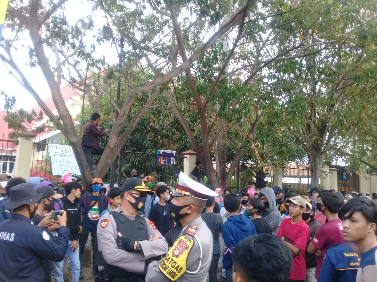 Aksi Demonstrator, menolak Omnibus Law Cipta Kerja Rancangan Undang-Undang (RUU) yang sudah disahkan oleh DPR RI beberapa hari lalu, Namun mahasiswa melakukan aksi unjuk rasa untuk mendesak pemerintah agar mencabut UU Cipta Kerja.