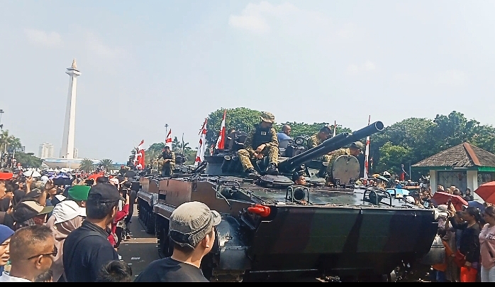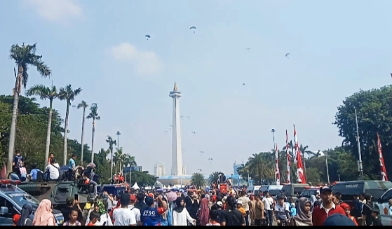 PENJURU.ID I Jakarta – Hari Ulang Tahun (HUT) ke-80 Tentara Nasional Indonesia (TNI) di Silang Monas diserbu ribuan warga Jakarta Bogor Depok Tanggerang dan Bekasi (Jabodetabek) yang ingin menyaksikan parade, atraksi, pameran alutsista dan hiburan rakyat. Warga rela berdesakan dan kepanasan hanya untuk menyaksikan HUT ke-80 TNI yang digelar pada Minggu (5/10/2025).