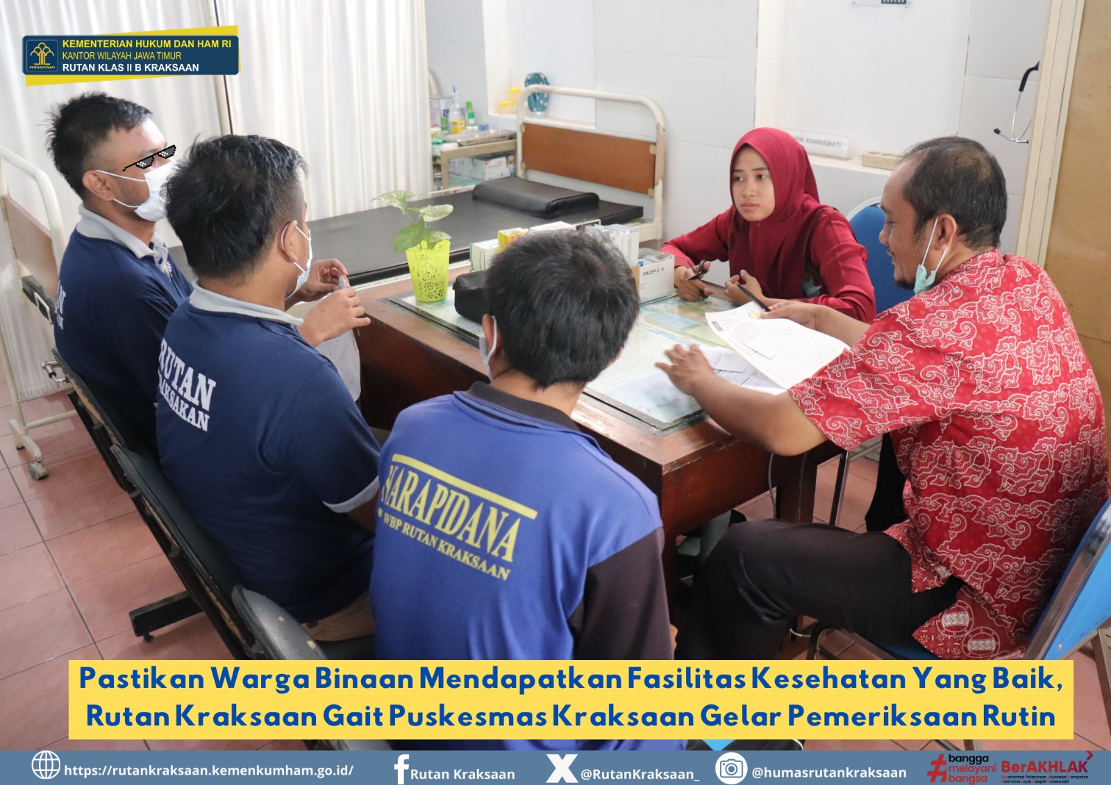 PENJURU.ID | Probolinggo – Rumah Tahanan Negara (Rutan) Kelas IIB Kraksaan Kantor Wilayah Kemenkumham Jawa Timur melaksanakan pemeriksaan kesehatan rutin bagi seluruh warga binaan, kegiatan ini berkolaborasi bersama dengan Puskesmas Kraksaan.