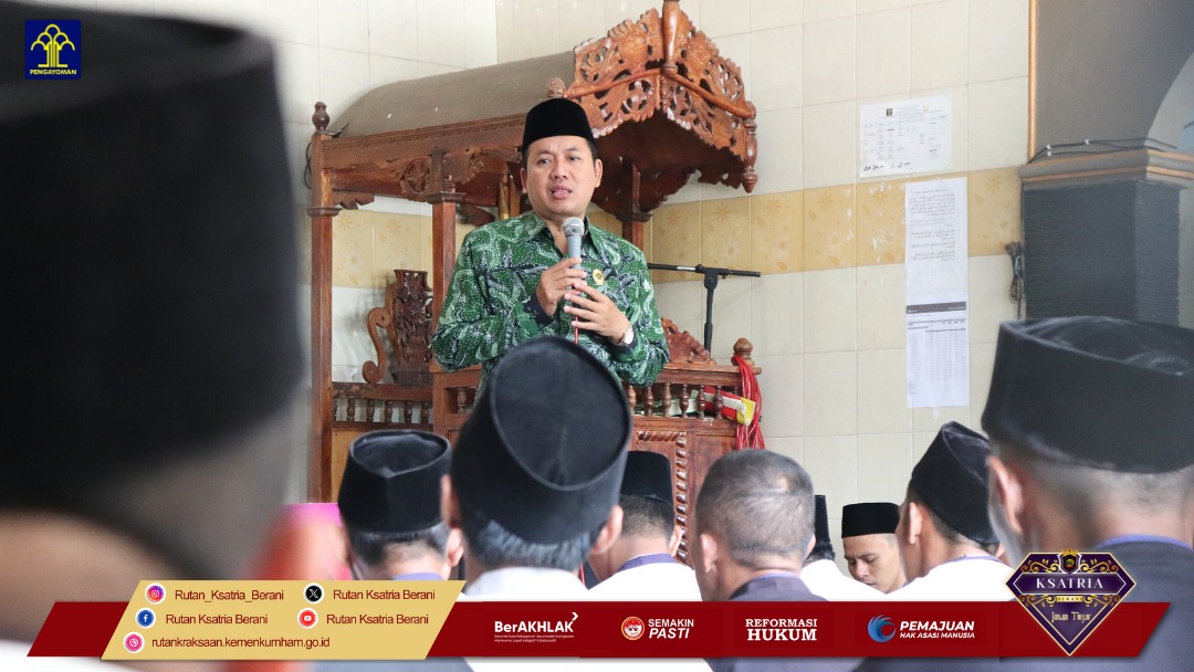 Kepala Rutan Ksatria Berani, Bayu Muhammad, menyampaikan bahwa kegiatan seperti ini sangat penting bagi pembinaan rohani warga binaan.