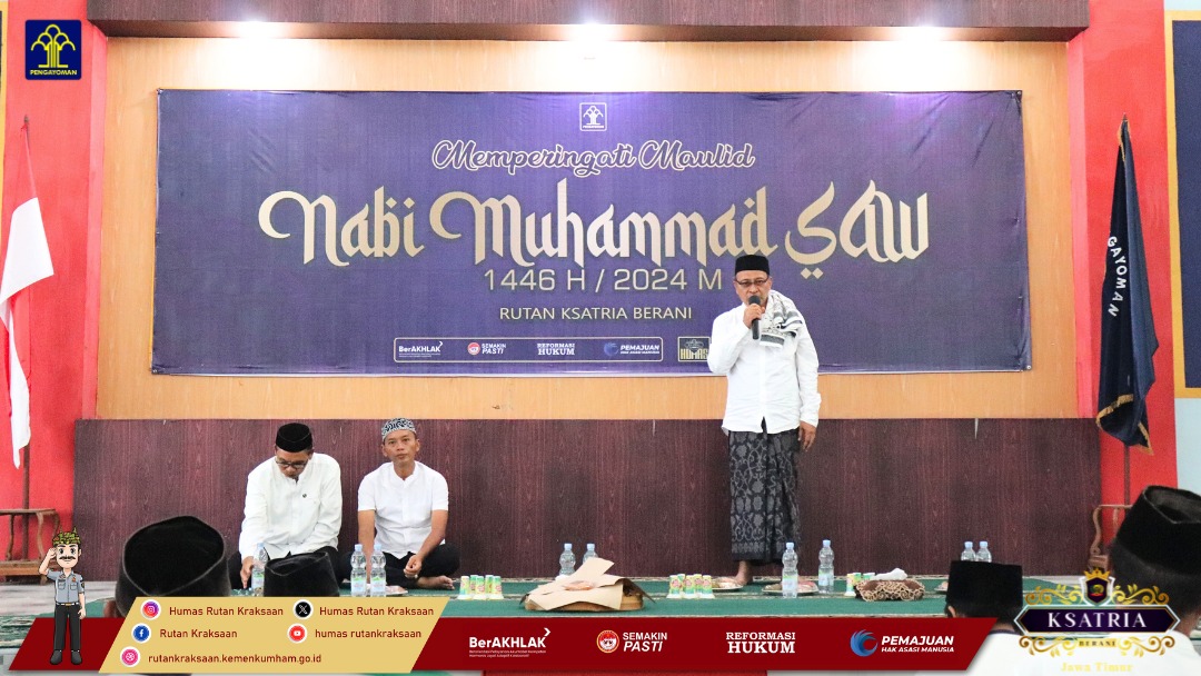 PENJURU.ID | Kraksaan – Pada kesempatan ini Rutan Ksatria melaksanakan kegiatan peringatan Maulid Nabi Muhammad SAW 1446 H, yang berlangsung di Aula Pengayoman Rutan.