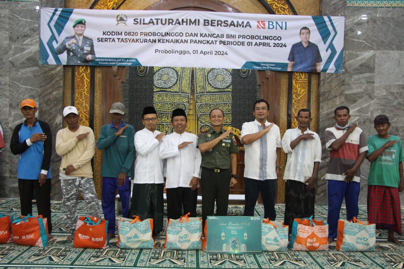 PENJURU.ID | Probolinggo – Bertempat di Masjid Al – Hidayah, Makodim 0820/Probolinggo menggelar silahturahmi dengan kantor cabang (Kancab) BNI Probolinggo sekaligus tasyakuran kenaikan pangkat periode 1 April tahun 2024, Selasa (2/4).