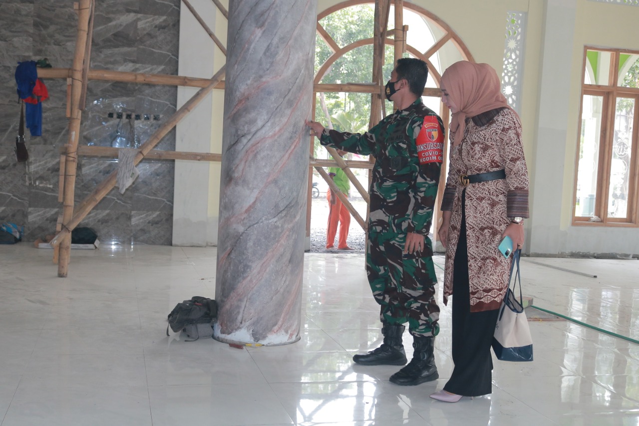 Lebih lanjut Dandim mengatakan untuk saat ini pihaknya sedang melakukan pemasangan paving dan lampu di sisi luar bangunan masjid serta pagar.