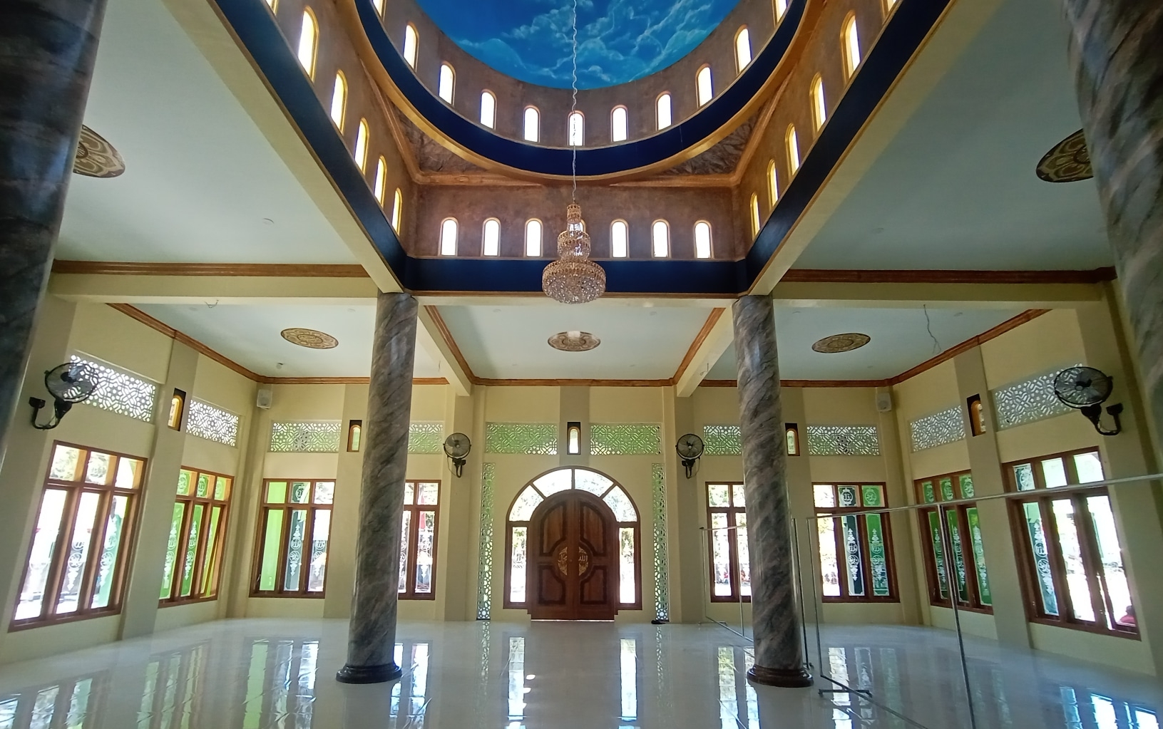 Untuk diketahui tempat ibadah yang didominasi warna hijau ini ditargetkan selesai sepenuhnya bulan agustus, namun syukur alhamdullillah bisa diselesaikan lebih awal dan tinggal menunggu pelaksanaan peresmiannya.