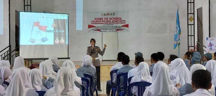 PENJURU. ID | Jeneponto – Polwan polres jeneponto melaksanakan kegiatan polwan goes to school sebagai rangkaian kegiatan dalam rangka hari jadi polisi wanita ke-74 tahun 2022.
