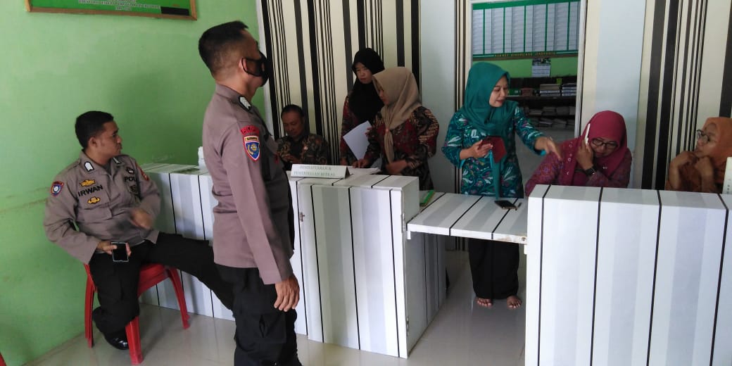 Dipimpin Kanit Binkamsa Aiptu Suparman beserta Kanit Bhabinkamtibmas Bripka Ridwan, S, Sos.i dan Kanit Binpolmas Bripka Irwan melaksanakan patroli dialogis dan binluh kepada Pegawai dan pengunjung kantor KUA Kabupaten Jeneponto, Rabu (6/4/2022)