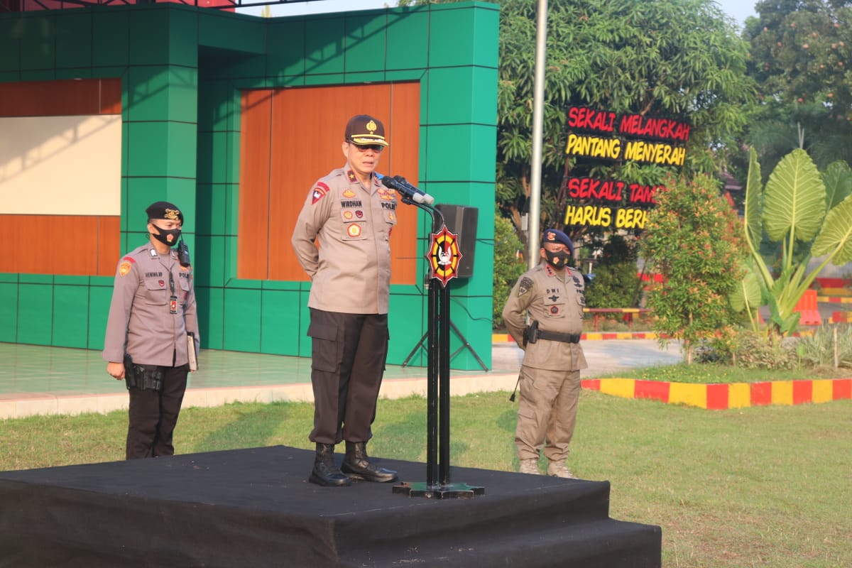 “Ya, hari ini kami menggelar apel sebagai antisipasi gangguan Kamtibmas dalam negeri dan wilayah Banten, serta penyelenggaraan apel penanaman nilai-nilai kebangsaan sekaligus mengecek kesiapsiagaan personil, sarana dan prasarana lainnya,” ucap Dwi Yanto Nugroho.