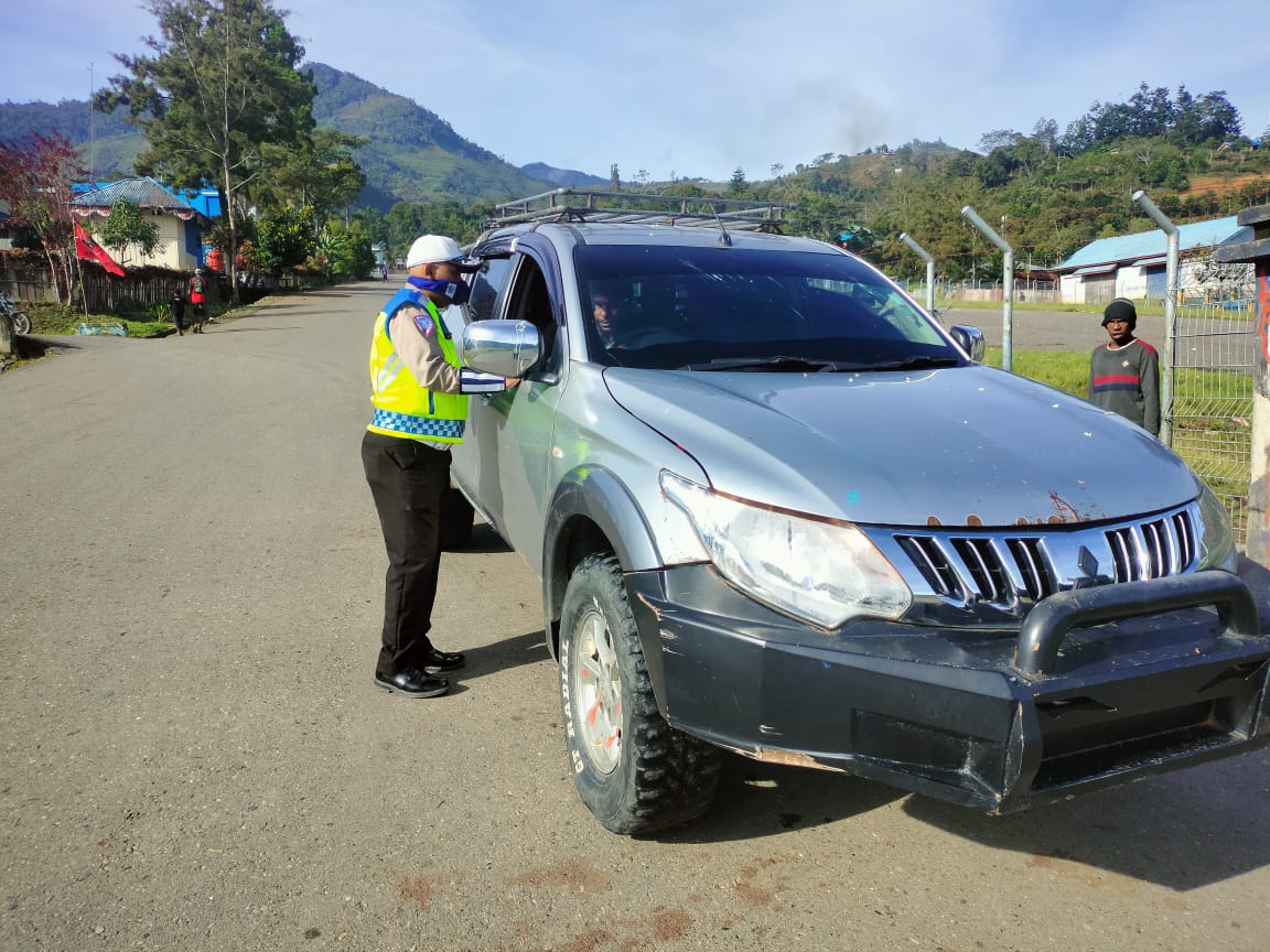 PENJURU.ID | Karubaga – Satuan Lalulintas Polres Tolikara kembali melaksanakan Strong Point ke jalan guna memberikan himbauan tentang Protokol Kesehatan dan edukasi cara Berlalulintas yang baik kepada Masyarakat, bertempat di Pertigaan Lapangan Merah Putih Karubaga, Senin (14/06).