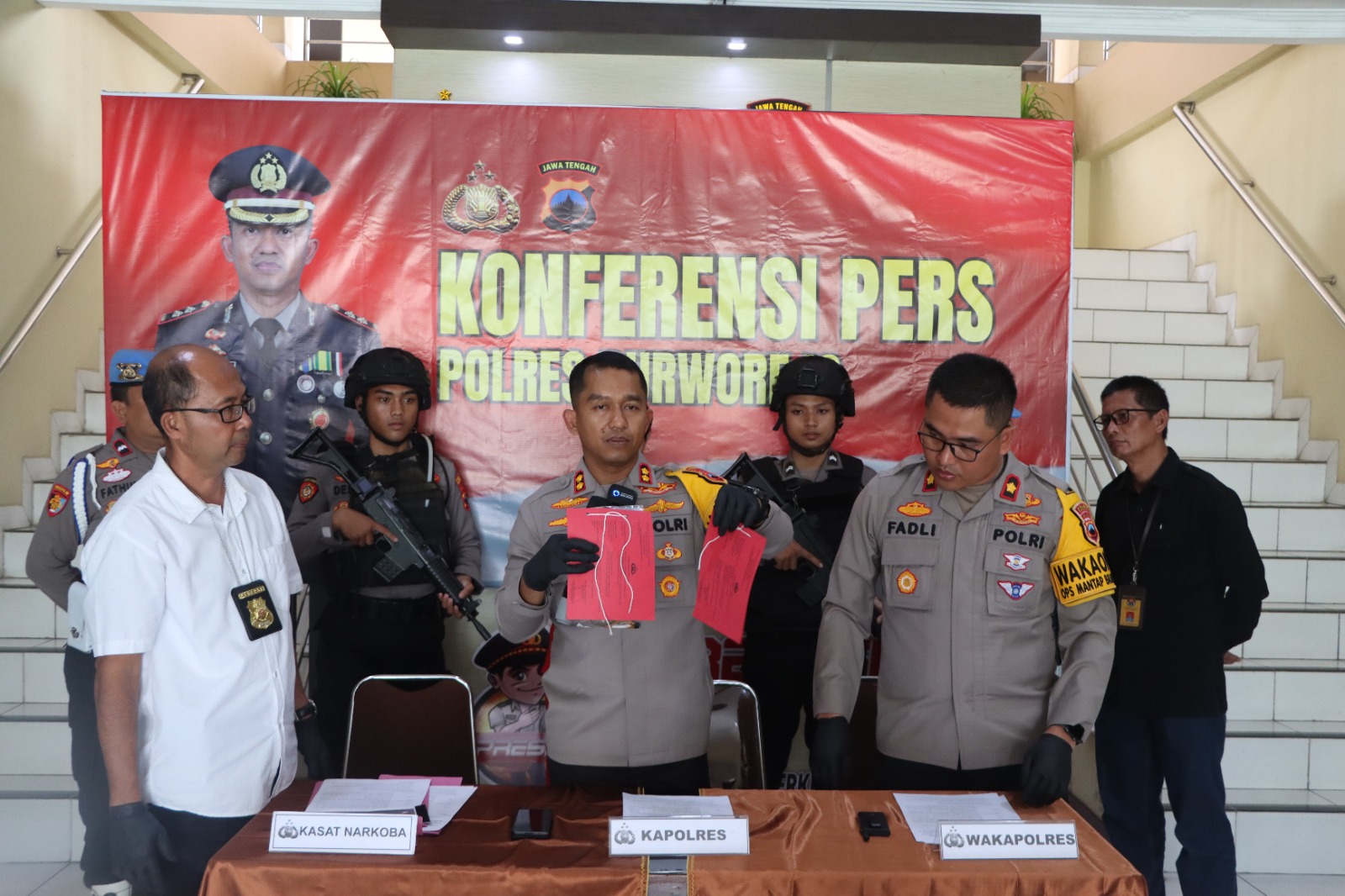 “Pada saat tim kami melakukan penggeledahan di TKP yaitu di kontrakan sdr. Sukariyadi, ditemukan barang bukti Sabu seberat 0.25 gram yang diduga milik pelaku terkait penyalahgunaan Narkotika tersebut” ujar Kapolres didampingi Wakapolres dan Kasat Narkoba Polres Purworejo.