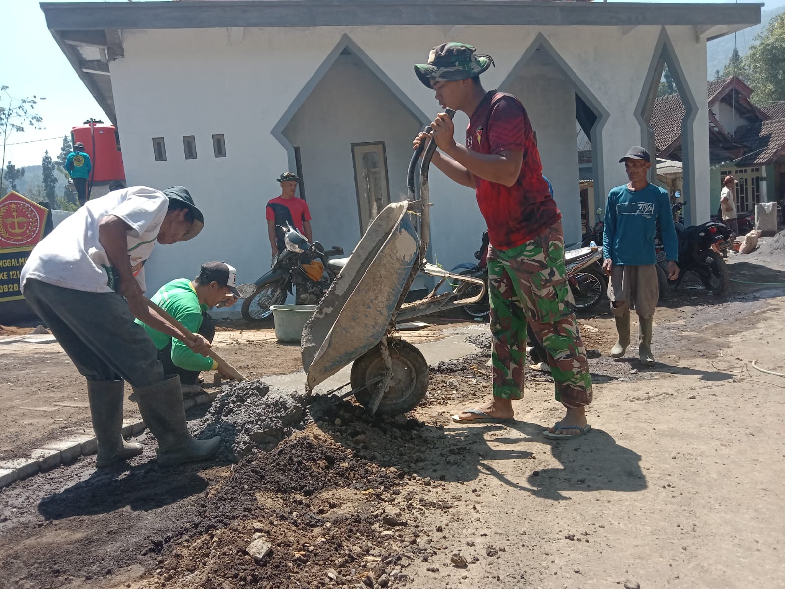 PENJURU.ID | Probolinggo – Satgas TMMD ke 121 Kodim Probolinggo tahun 2024 bersama masyarakat melakukan pembangunan rabat beton sepanjang jalan menuju Musholla di Dusun Cocok, Desa Kalianan, Kecamatan Krucil, Kabupaten Probolinggo.