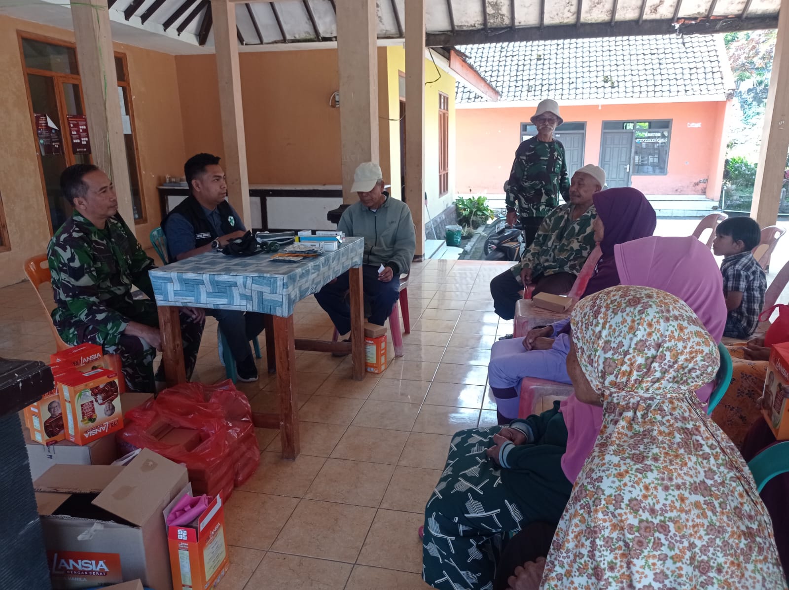 “Tim kesehatan menyediakan berbagai macam obat umum seperti vitamin, obat diare, obat maag, obat gatal, obat sakit gigi, antinyeri serta menyiapkan peralatan luka seperti plester luka, betadine, alkohol untuk melakukan pemeriksaan dan pertolongan pertama pada pasien yang datang,”kata Serma Moh Wahid.
