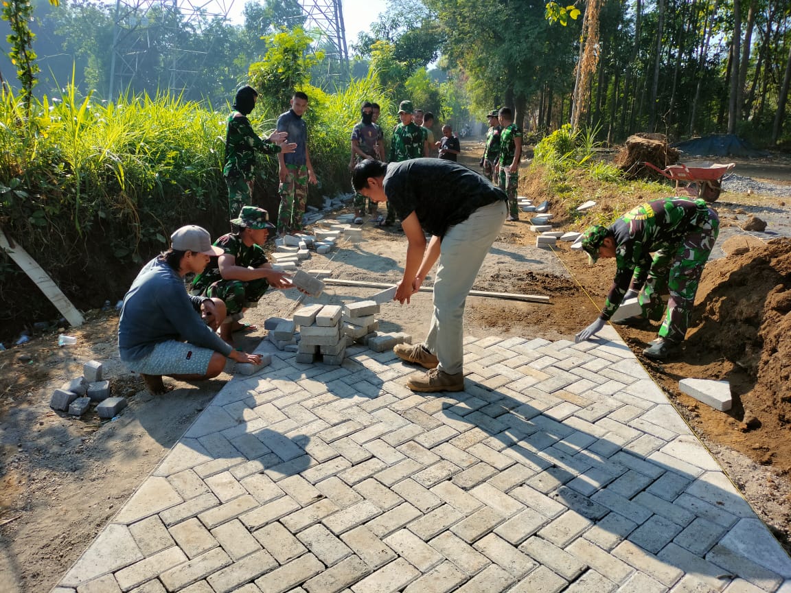 PENJURU.ID | Probolinggo – Proses pengerjaan Pavingisasi oleh Satuan Tugas (Satgas) TNI Manunggal Membangun Desa (TMMD) yang menghubungkan antara Desa Klampok Kecamatan Tongas Probolinggo dengan Desa Sebalong Kecamatan Nguling Pasuruan ini terus dikebut.