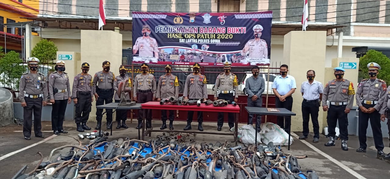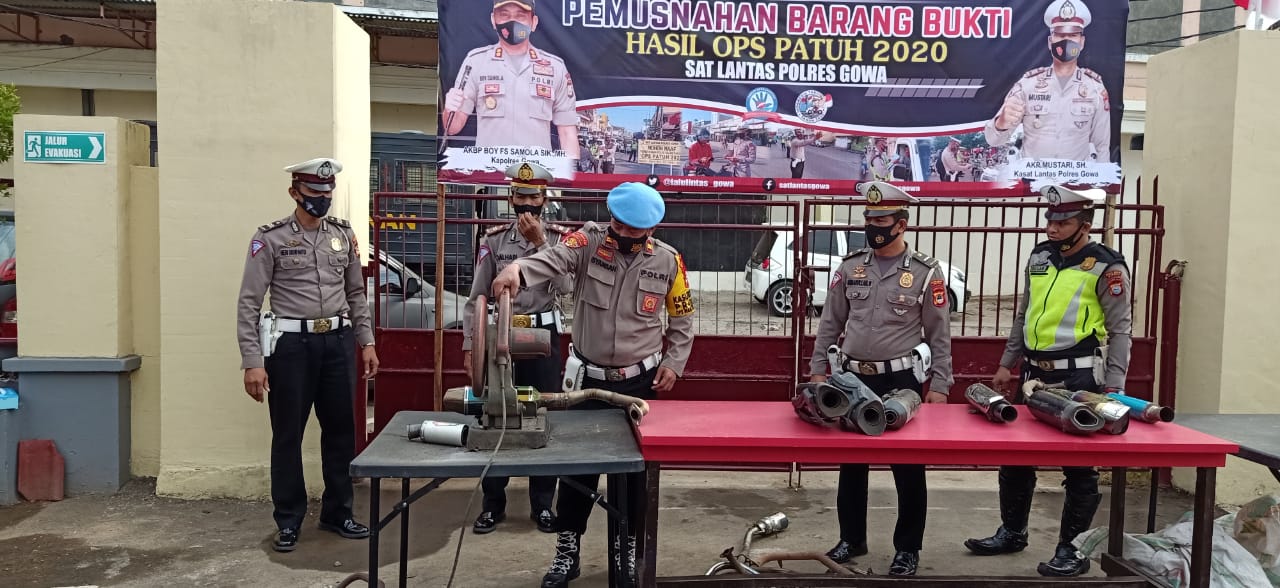 “Harapan kami melalui pemusnahan barang bukti knalpot racing ini, dapat memberikan dampak positif buat masyarakat untuk tidak menggunakan lagi knalpot yang tidak sesuai dengan standar dan memberikan rasa nyaman dan aman lingkungan Masyarakat menjelang digelarnya Pilkada Gowa 2020”. Ungkap Kapolres Gowa AKBP Boy Fs Samola S.IK MH.