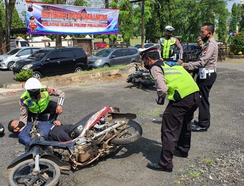 PENJURU.ID | Pekalongan – Dalam upaya meningkatkan kemampuan anggota jajaran Polres Pekalongan dalam penanganan kejadian laka lantas ditengah pandemi Covid-19, pagi tadi Unit Laka Sat Lantas Polres Pekalongan menggelar binteknis TPTKP Laka Lantas dan PPGD (Penanganan Pertama Gawat Darurat) korban laka lantas terhadap perwakilan anggota Polsek jajaran dan para anggota Bhabinkamtibmas, Senin (31/5/2021).