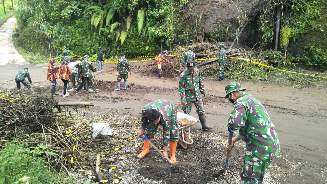 “Agar penghubung jalan wisata Bromo tidak terganggu dan membahayakan bagi masyarakat, serta menghindari terjadinya kecelakaan, Koramil 0820/08 Sukapura turun langsung ke titik terjadi longsor yaitu di Dusun Jurangprahu, Desa Wonokerto, bergegas melakukan kerja bhakti, dengan alat manual bersama warga dan Ormas, serta warga Desa Wonokerto, untuk membersihkan material longsor berupa tanah, lumpur, dan kayu, kita kerja Bhakti mulai dari kemarin, kali ini merupakan lanjutan agar jalan benar benar bisa di lalui dengan aman, ucap,” Danramil Sukapura, Kapt. Arh. Heri Widodo.