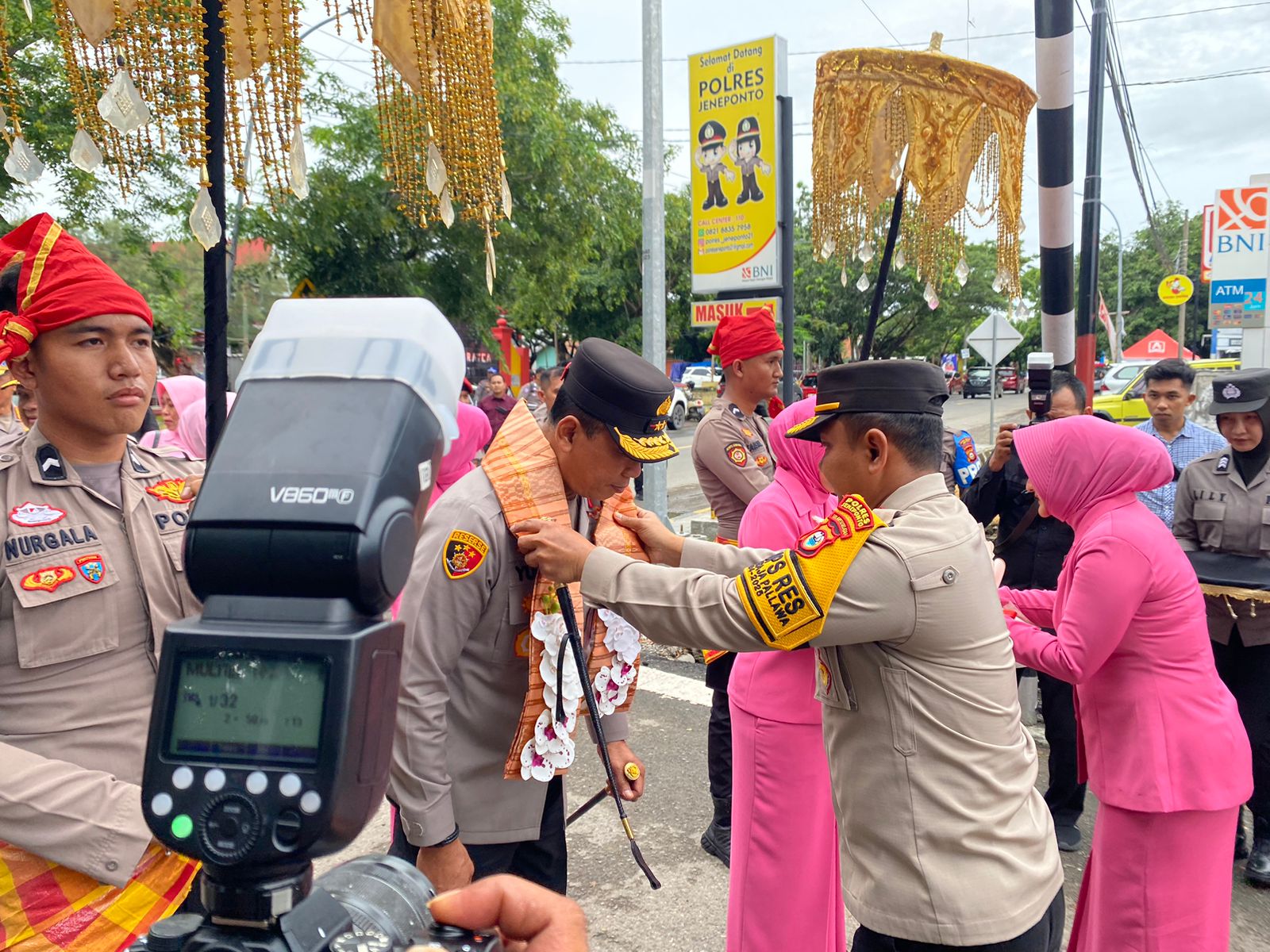 Nampak Kapolres Jeneponto AKBP Widi Setiawan sambut hangat kedatangan Kapolda Sulsel berserta jajarannya.