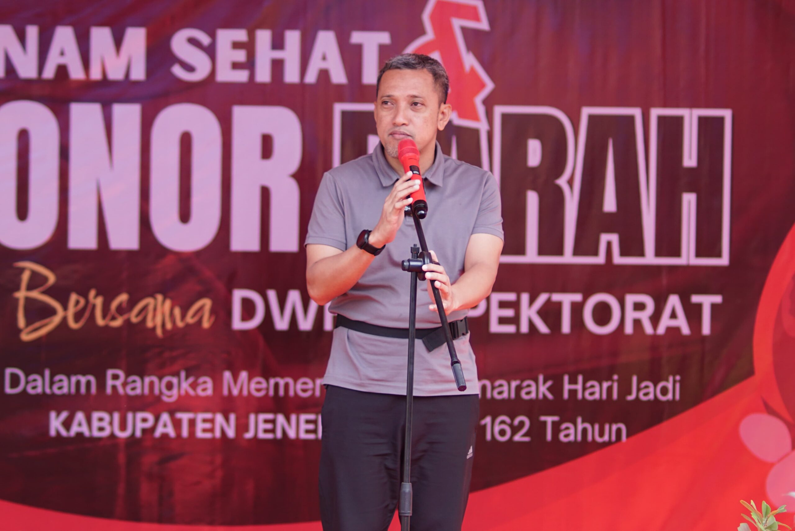 “Kegiatan seperti ini sangat positif dan patut menjadi contoh. Selain menjaga kebugaran, kita juga bisa membantu sesama melalui donor darah. Ini sejalan dengan semangat kebersamaan dan kepedulian yang menjadi nilai utama dalam peringatan Hari Jadi ke-162 Kabupaten Jeneponto,” ujar Bupati dalam sambutannya.