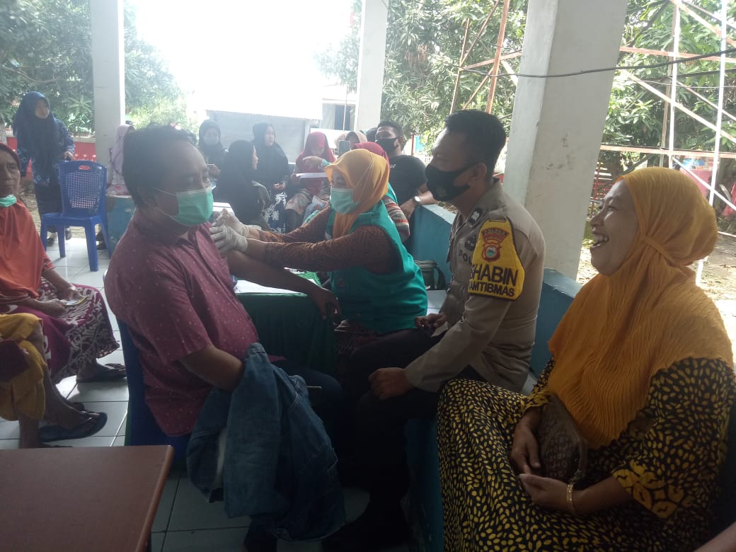 Bhabinkamtibmas desa baraya Aiptu Iskandar bersama babinsa Sertu Mursalim memantau pelaksanaan vaksinasi di desa baraya dengan mendampingi tim vaksinator dari Puskesmas Bulusibatang Kecamatan Bontoramba.