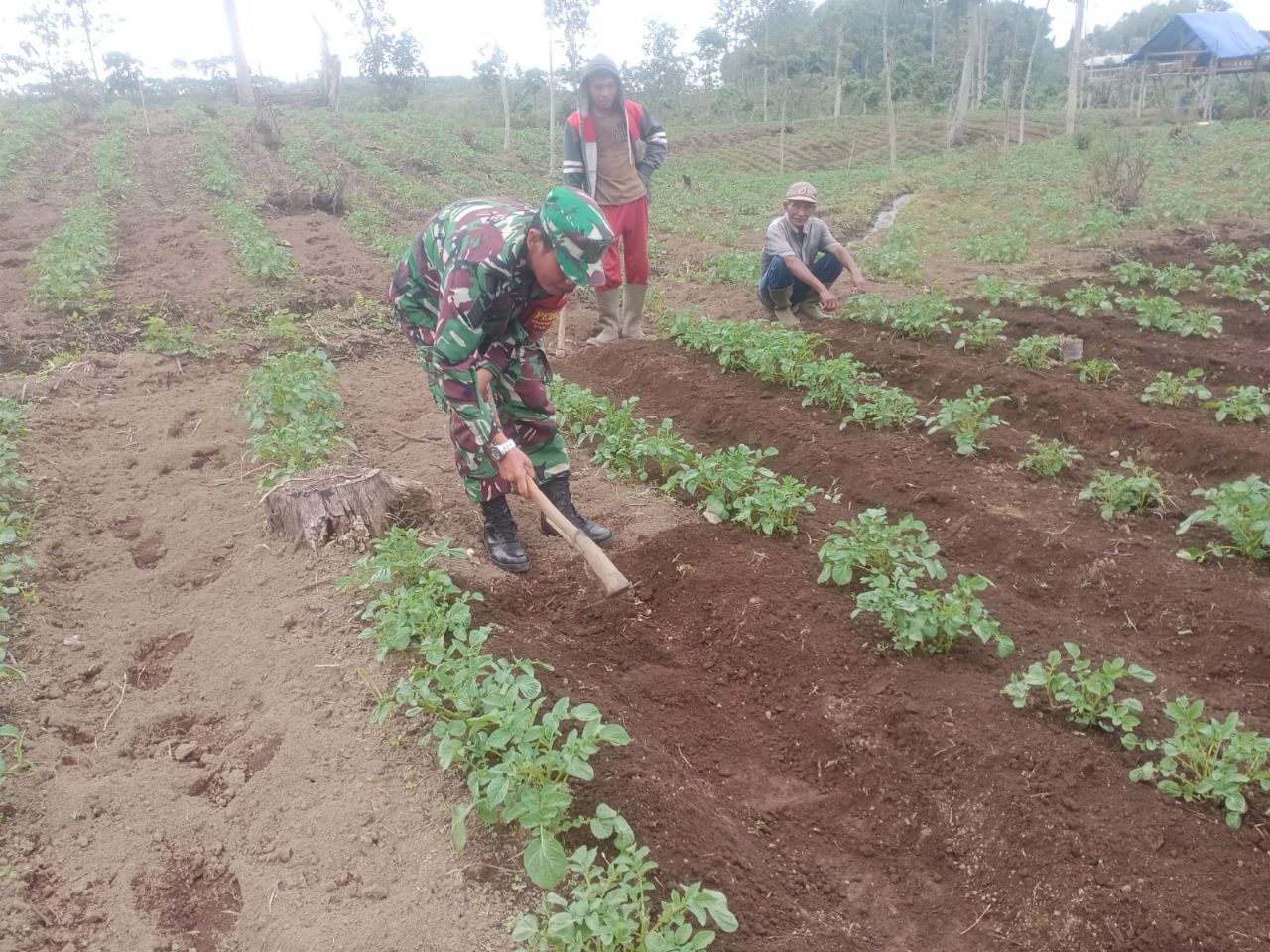 Sementara itu Ali, pemilik tanaman kentang, merasa senang dengan kehadiran Babinsa di lokasi tempatnya menanam kentang. Ali juga sangat bersyukur karena tanaman kentang miliknya tumbuh dengan sebur sesui harapanya.sehingga bisa di prediksi kedepanya hasil panen kentangnya melimpah dan bisa meningkatkan perekonomian keluarganya.