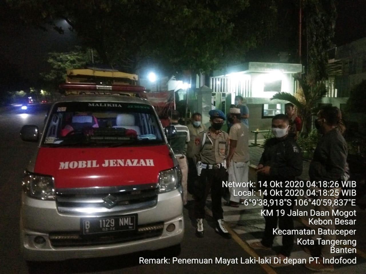 PENJURU.ID | Kota Tangerang – Seorang lelaki ditemukan tak bernyawa diduga karena sakit yang di deritanya, berdasarkan Kartu Identitas yang ditemukan (KTP), lelaki tersebut bernama Iwan (43) beralamat Kp Kadu Kesur Rt.03/01 Kel. Majau Kec. Seketi Kab. Pandeglang, Prov. Banten, adapun tempat meninggalnya korban di Depan PT. Indofood Jln Daan Mogot Km 19 Kel. Besar, Kec. Batu Ceper, Kota Tangerang pada Rabu dinihari (14/10/2020) sekiatar pukul 02.00 WIB. Mengutip keterangan pers dari Kasi Humas Polsek Batu Ceper, BRIPKA EKO I.Y di Mapolsek Batu Ceper Kamis (15/10/2020).