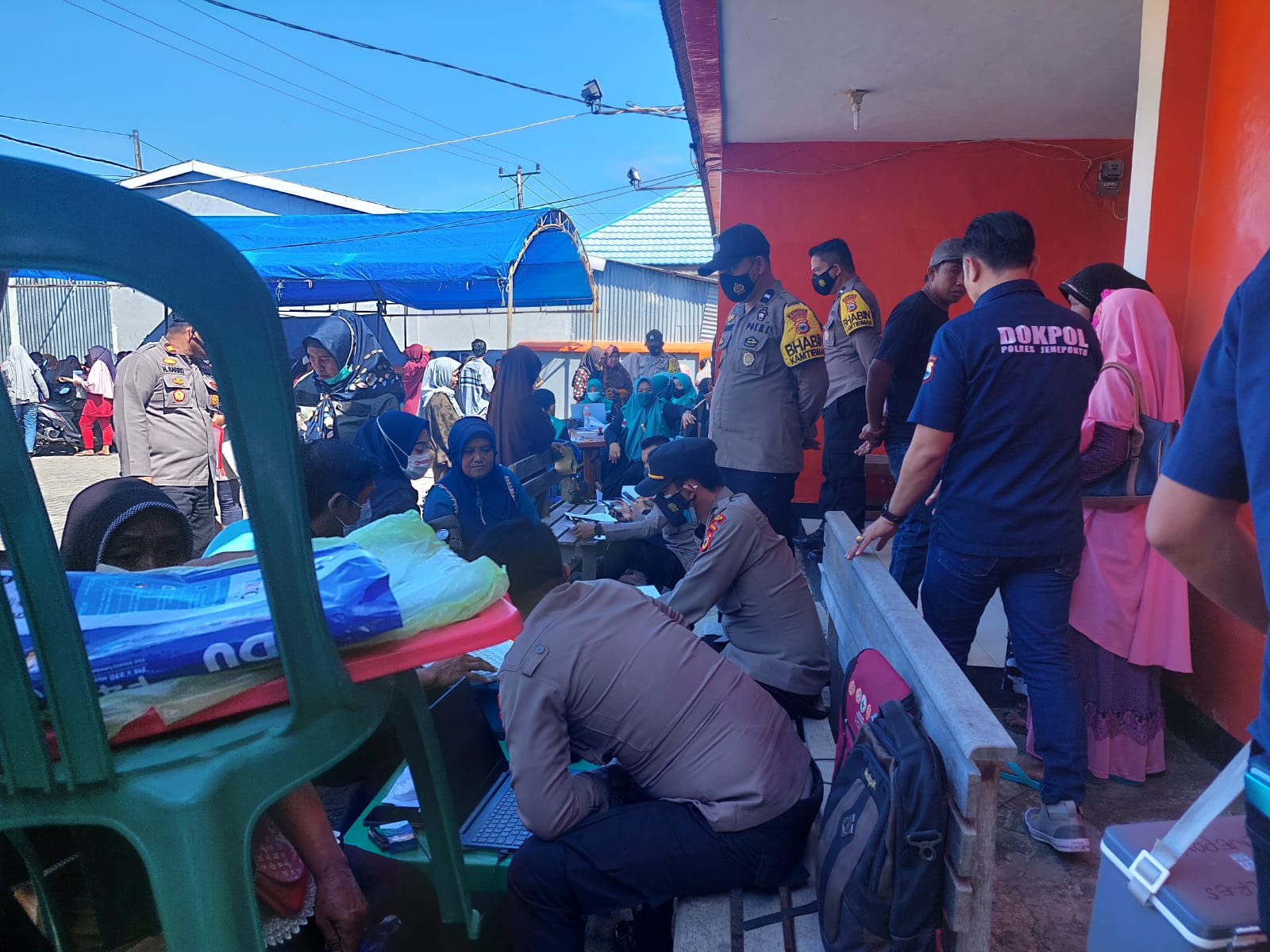 Selain penyaluran program sembako, kegiatan tersebut juga di kawal pelaksanaan vaksinasi oleh tim Vaksinator dari puskesmas bangkala dan Sidokkes Polres Jeneponto di area halaman kantor pos allu.