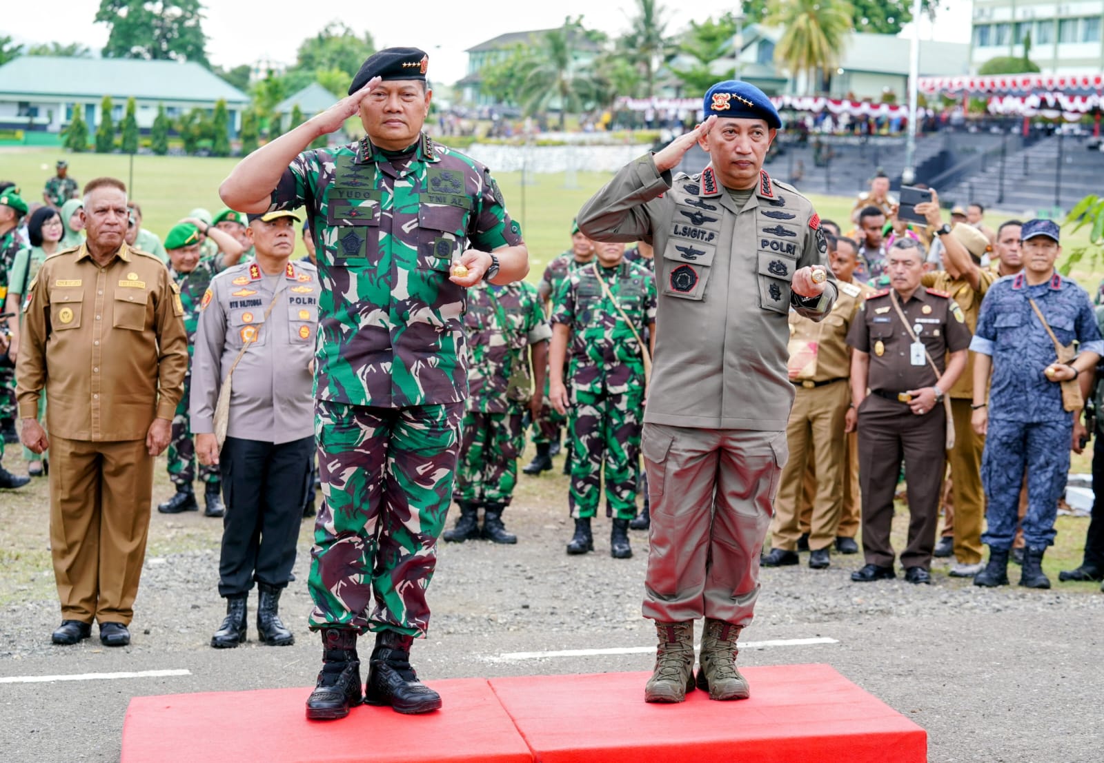 “Sehingga kemudian TNI-Polri tingkat wilayah betul-betul solid untuk menjaga, mengamankan seluruh aktifitas masyarakat, sehingga masyarakat betul-betul bisa fokus bekerja, beraktifitas dan tentunya bisa berisitirahat karena ada TNI-Polri yang selalu siap mengawal dan menjaga bapak-ibu sekalian,” ujar Sigit.
