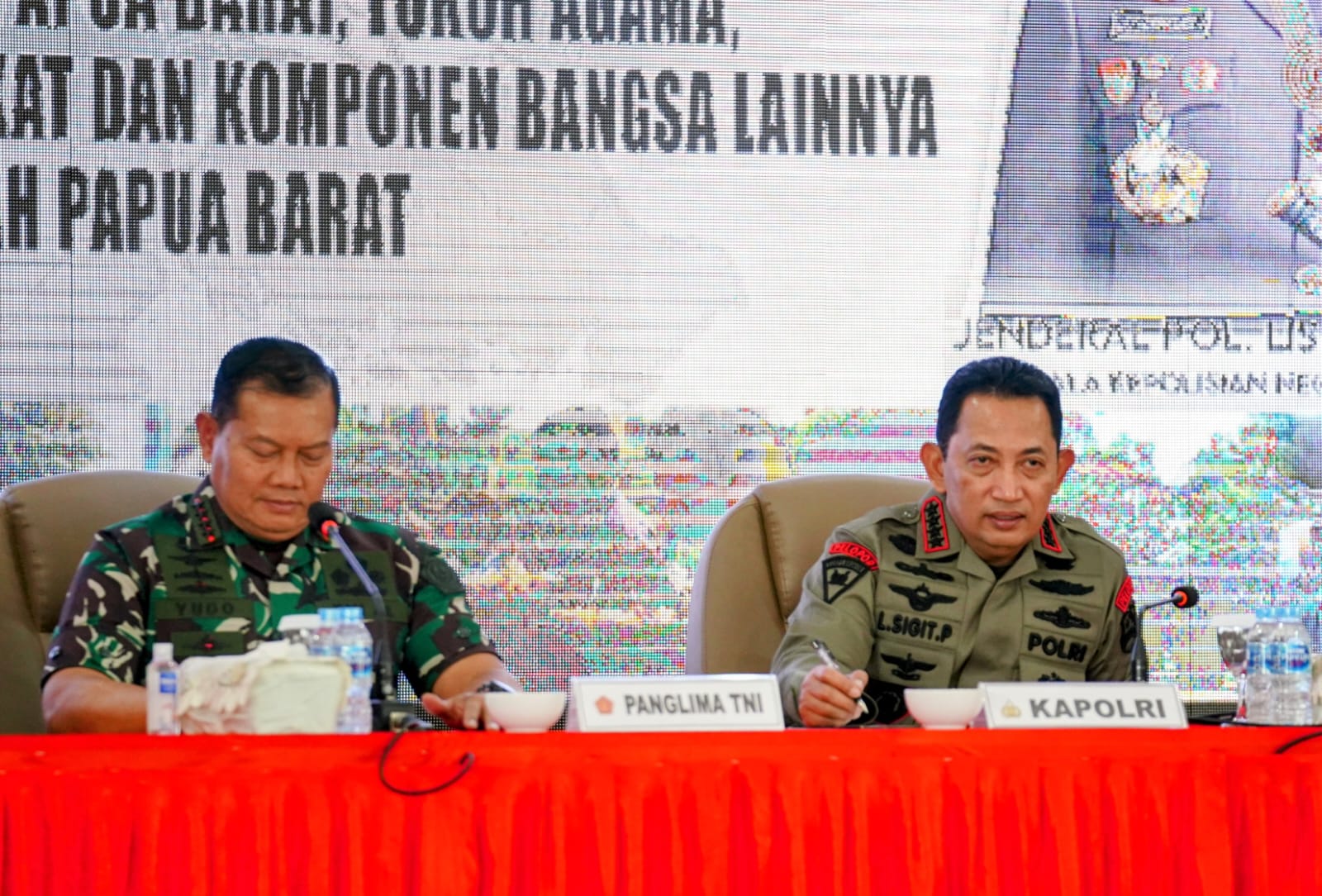 “Karena itu tentunya tidak ada kata lain program yang digelontorkan untuk mendukung kesejahteraan untuk mendukung pembangunan wilayah Papua Barat harus terus berjalan. Dan tugas TNI-Polri untuk mengawal dan menjaga itu semua. Agar semua bisa berjalan. Salah satu bentuk kecintaan Pak Presiden pada saat beliau menuliskan impian Indonesia kedepan 2015-2085 beliau menulisnya di Merauke, di wilayah Papua. Jadi tentunya seluruh program ini, kebijakan ini harus betul-betul kita jaga dan kita kawal,” papar Sigit.