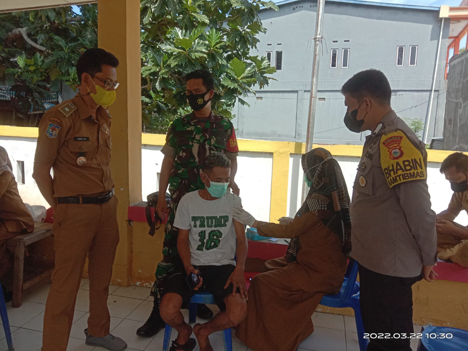 PENJURU. ID | Jeneponto – Bhabinkamtibmas Bripka Muhtar bersama Babinsa Sertu Hamsir memantau kegiatan pemberian Vaksinasi Covid-19 bertempat di Kantor Kelurahan Tonrokassi Timur Kecamatan Tamalatea, Selasa (22/3/2022)