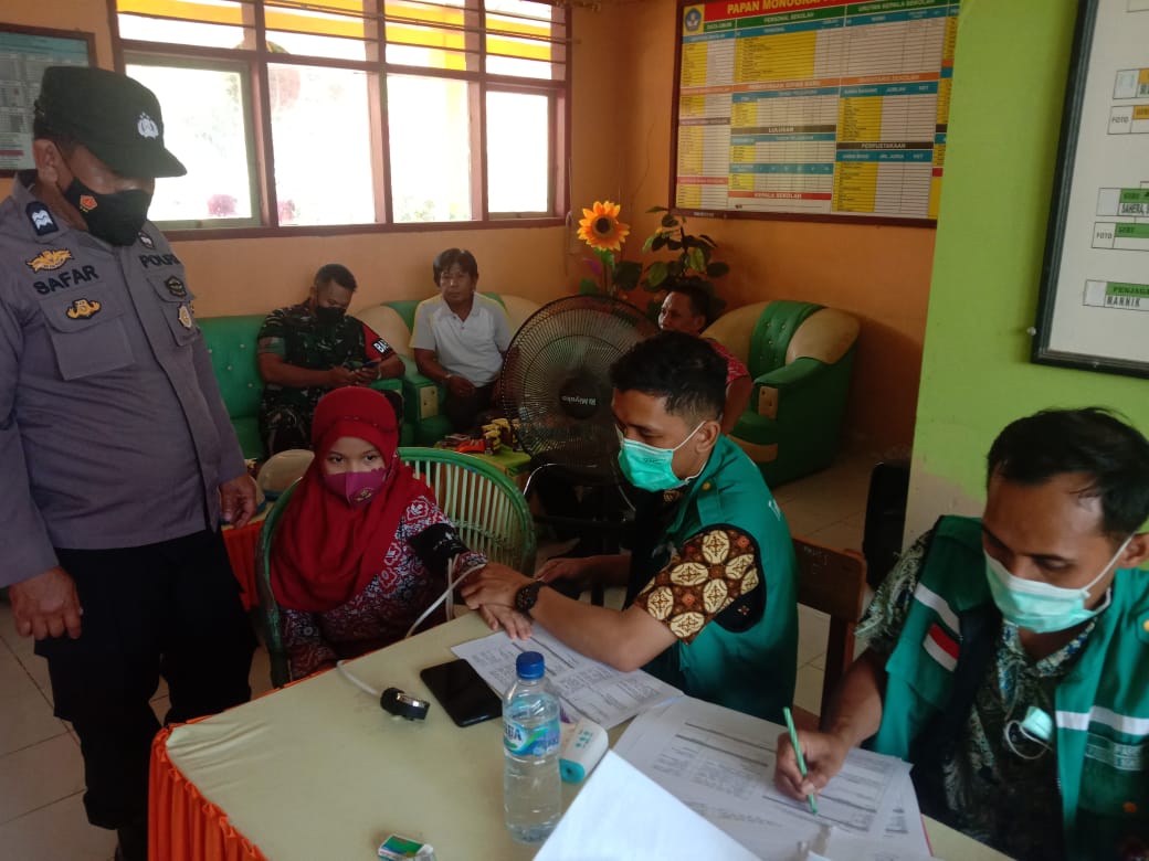 Aiptu Safaruddin Y selaku Bhabinkamtibmas yang menjadi garda terdepan dalam pembinaan di tingkat bawah turut melaksanakannya disamping itu bhabinkamtinmas juga menghimbau kepada masyarakat yang datang melaksanakan vaksin covid-19.