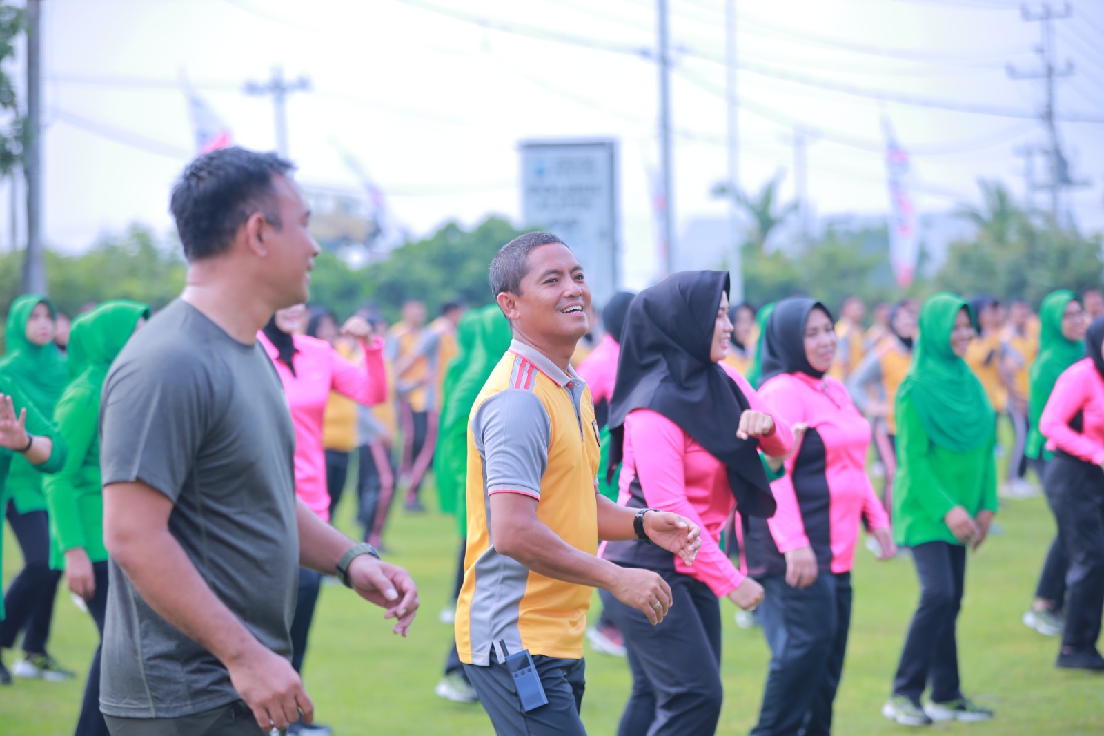 Kegiatan olahraga bersama berlangsung meriah, berbagai kegiatan diadakan diantaranya senam SKJ, pertandingan voli, lomba memindah sarung, lomba joged balon. Para personel TNI-Polri beserta para istrinya ini membaur bersama melaksanakan olahraga dan lomba dengan penuh keceriaan.