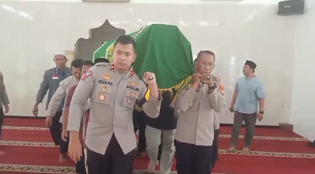 Namun yang membuat suasana semakin mengharukan adalah ketika Kapolsek Kompol Reza Hafiz Gumilang tak hanya hadir sebagai atasan dan tokoh aparat, tetapi juga menunjukkan kepeduliannya dengan membantu mengangkat keranda jenazah.
