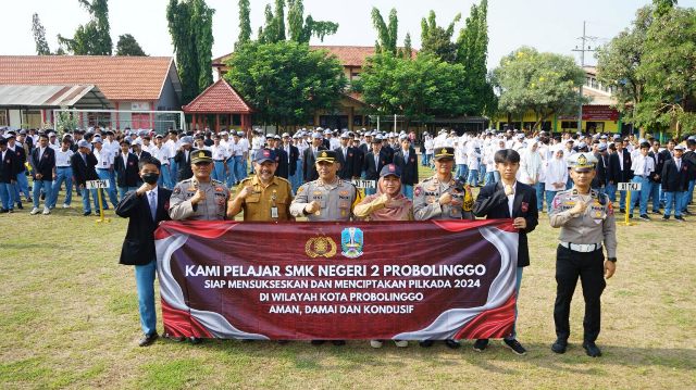 PENJURU.ID | Probolinggo – Polres Probolinggo Kota AKBP Oki Ahadian P. S.I.K., M.H., mengajak siswa-siswi SMKN 2 Kota Probolinggo untuk ikut serta menyalurkan hak suara untuk bisa bersama-sama menentukan pemimpin provinsi jawa timur maupun kota/kab. Probolinggo yang akan menentukan nasib jawa timur dan Kota / Kab. Probolinggo ke depannya.