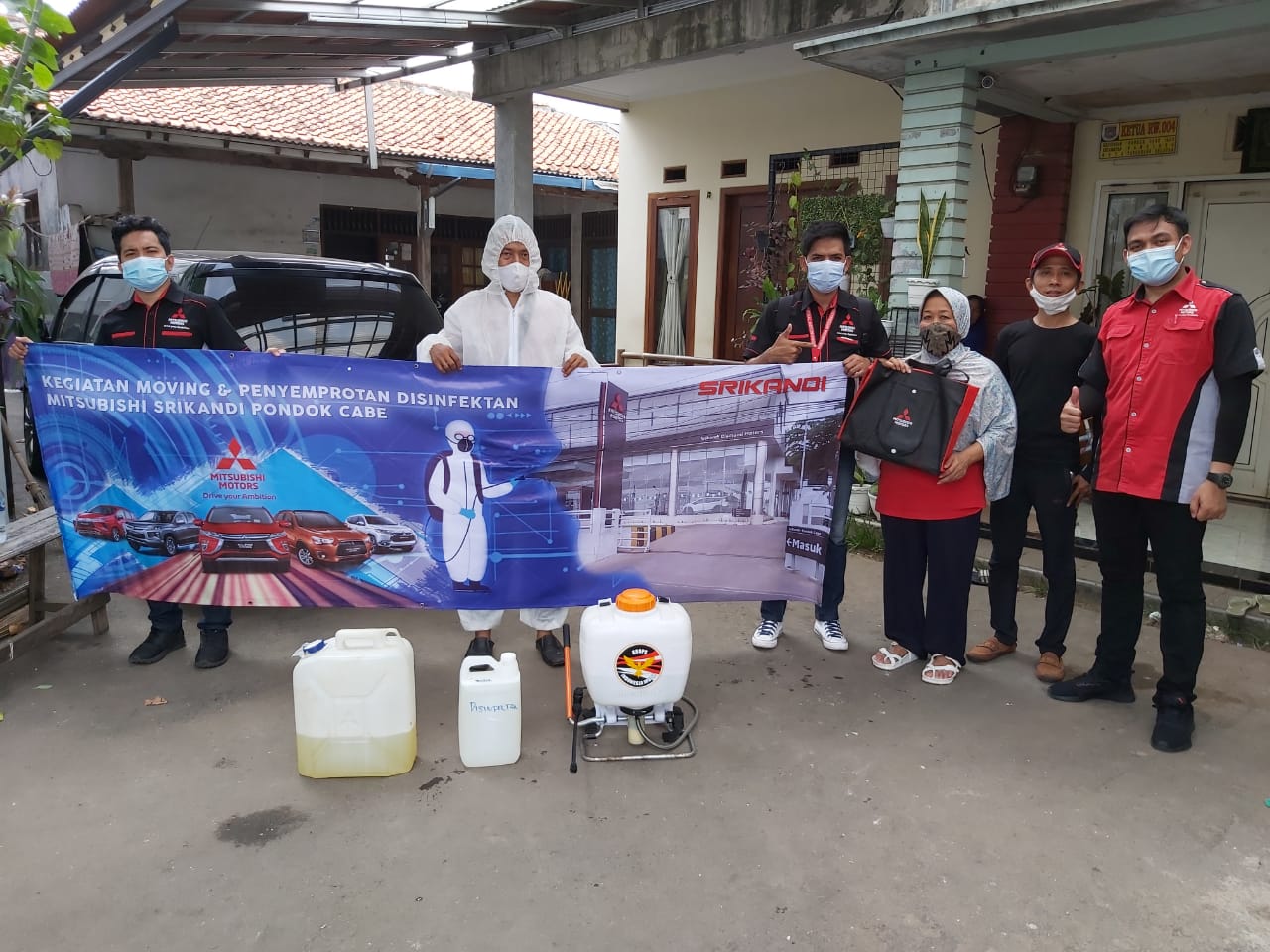 PENJURU. ID/Tangerang Selatan. Demi mencegah penyebaran dan antisipasi melawan virus corona atau Covid-19, PT. Srikandi Diamond Motors Cabang Pondok Cabe bekerjasama dengan Ketua RW. 004, Kelurahan Pondok Cabe Ilir, Kecamatan Pamulang, Tangsel, melakukan penyemprotan cairan Desinfektan Gratis diseputaran rumah-rumah warga, tempat ibadah dan jalan. Sabtu,(14/10/2020).