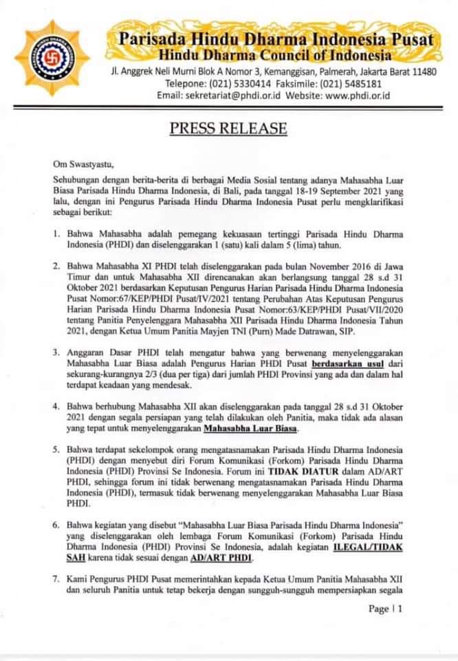 Ini artinya Pengurus PHDI Pusat 2016 – 2021 demisioner, telah dg sengaja menyangkutkan Agama Hindu di Indonesia melakukan pembangkangan terhadap pemerintah Republik Indonesia.