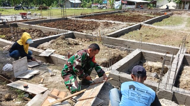 Bentuk Kepedulian TNI di Masyarakat, Babinsa Klego Bantu Warga Cor Pondasi Rumah