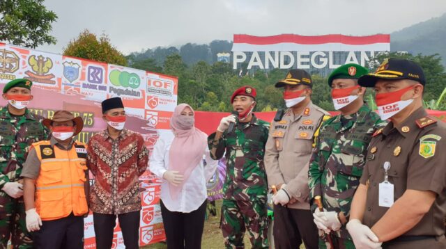 Peringati HUT RI ke-75, Grup 1 Kopassus Kibarkan Bendera Merah Putih di Landmark Pandeglang dan Laksanakan Baksos