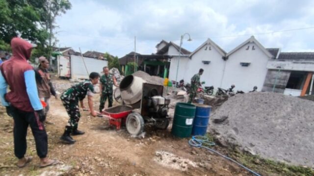 Tumbuhkan Semangat Kebersamaan, Babinsa Koramil 18/Kalijambe Ikut Serta Kerja Bakti Pembangunan Talud