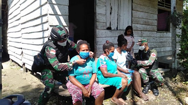 PENJURU.ID | Keerom – Satgas Pamtas Yonif Raider 300/Bjw, Pos Workwana memberikan masker gratis serta Baca selengkapnya