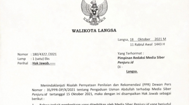 PENJURU.ID | Hak Jawab Walikota Langsa terhadap pemberitaan Penjuru.Id dengan judul : “Terlalu! Ulah Walikota Baca selengkapnya