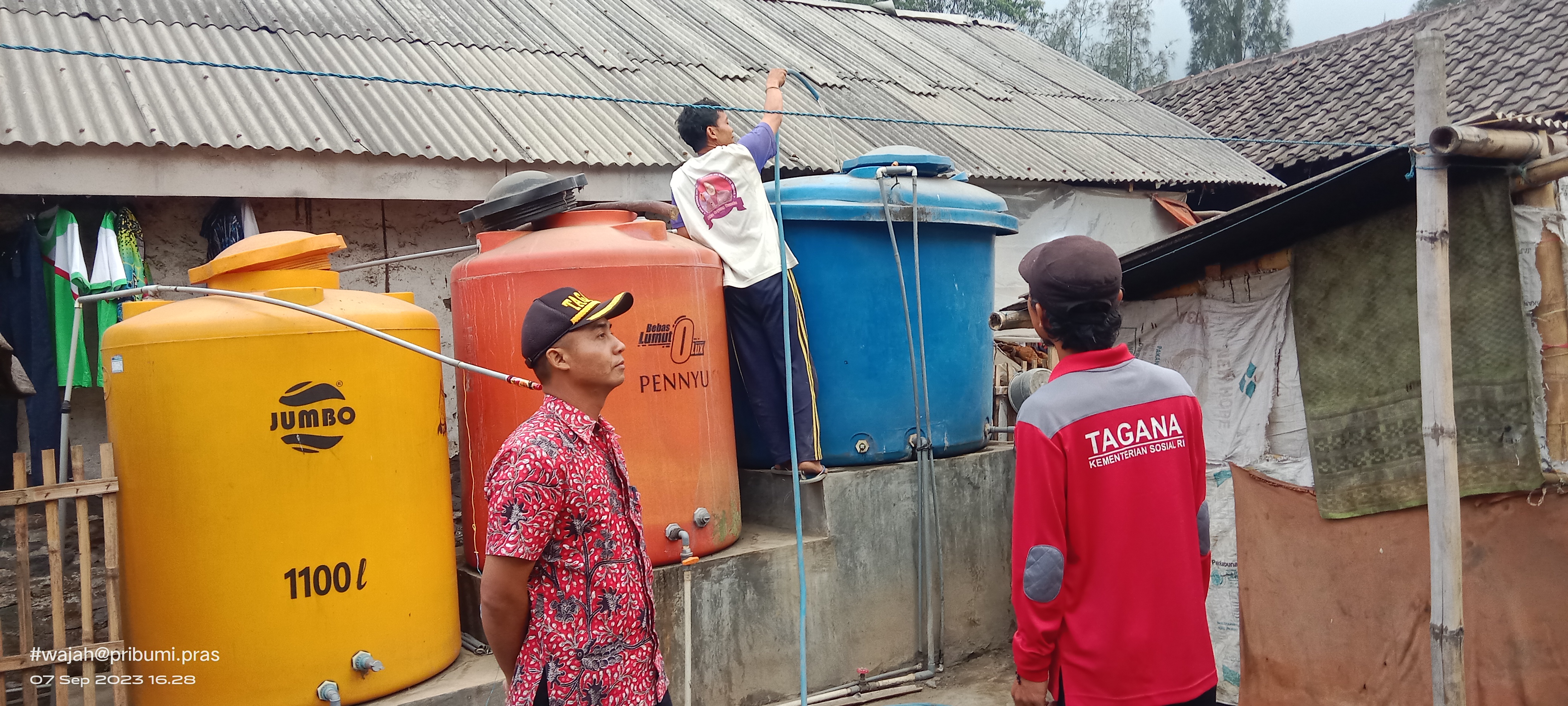 PENJURU.ID | Probolinggo – Untuk membantu masyarakat di wilayah yang Terdampak Karhutlah, Tagana Kabupaten Probolinggo terus begerak droping air Bersih. (07/09/2023)