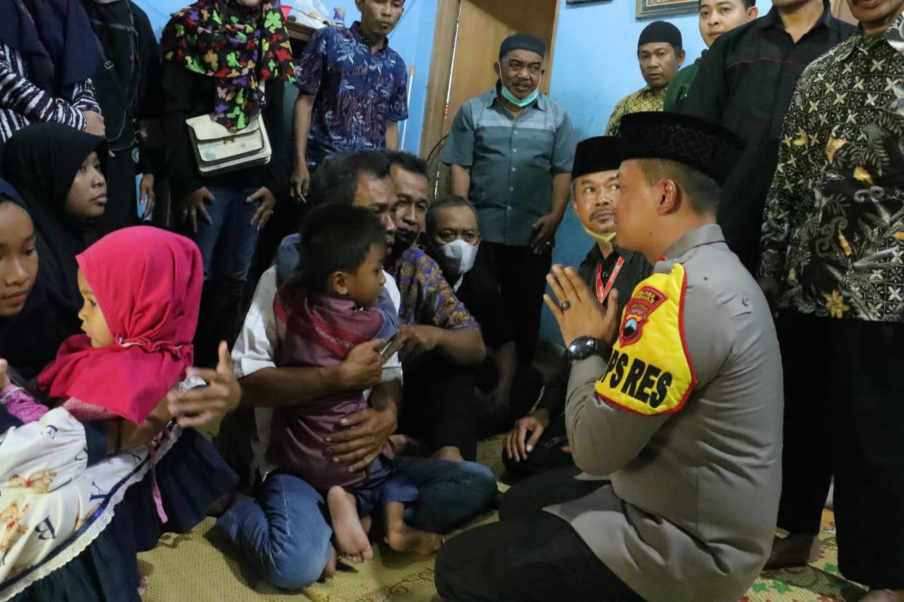 PENJURU.ID|Sukoharjo – Kapolres Sukoharjo AKBP Wahyu Nugroho Setyawan, yang didampingi sejumlah Pejabat Utama Polres, melaksanakan takziah terhadap salah satu korban meninggal dunia akibat kecelakaan antara sepeda motor dengan mobil box, di wilayah Kunden, Kecamatan Bulu.