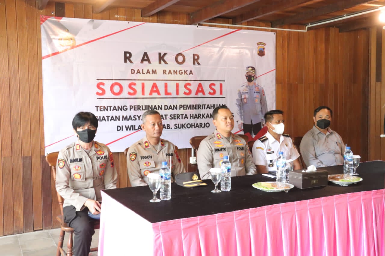 Kapolres Sukoharjo AKBP Wahyu Nugroho Setyawan menjelaskan, sosialisasi tentang Perijinan Dan Pemberitahuan Kegiatan Masyarakat, digelar dalam rangka menyambut sejumlah even menjelang perayaan Natal dan Tahun Baru 2023.