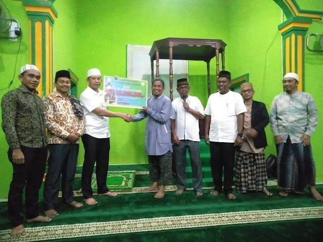 Ustadz Erwinsyah, dilanjutkan dengan penyerahan bantuan berupa uang sebesar Rp. 10 juta dari Baitul Mal Kabupten Aceh Tamiang yang diberikan secara simbolis kepada Badan Kemakmuran Masjid ( BKM ) Mesjid Baitul Makmur.